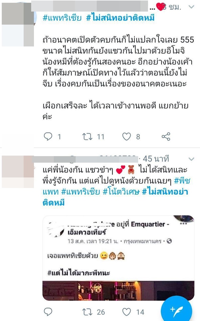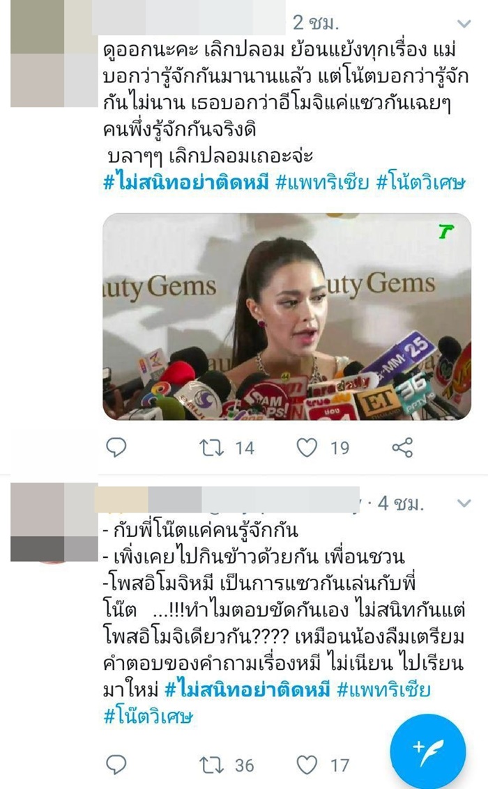 งานนี้ทำเอาชาวโซเชียลเป็นงง มองว่าคำตอบของสาว แพทริเซีย กู๊ด ในเรื่องนี้ มีความขัดแย้งกัน ตอนแรกบอกว่าไม่ได้สนิท อยู่ในฐานะคนรู้จัก แต่กลับมีการลงอีโมจิสื่อถึงกันใน IG หลายรูป โดยระบุว่า "แซวกันในฐานะเพื่อน" จนทำให้เกิดแฮชแท็ก #ไม่สนิทอย่าติดหมี ขึ้นมาแซวถึงเรื่องนี้กันเลยทีเดียว