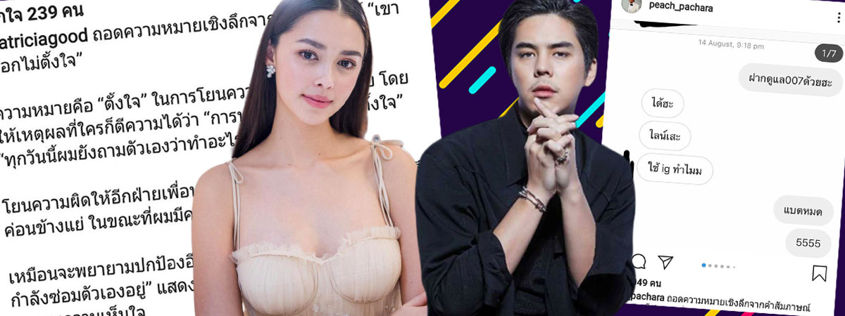 อยู่ดี ๆ ก็มีเรื่องมาให้เผือกกันตั้งแต่เช้าวันเสาร์เลยจ้า เมื่อ พีช พชร และ แพทริเซีย กู๊ด ที่ดูท่าว่าเรื่องราวจะจบไปได้ด้วยดี แต่กลับมีการขุดแชตลับของทั้งคู่ขึ้นมา และคนที่ปล่อยก็ไม่ใช่ใครที่ไหน ก็คือทั้งพีชและแพทริเซียนั่นเอง
