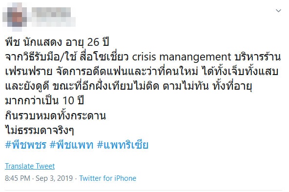 นอกจากนี้ หลายคนได้ออกมาชื่นชมการให้สัมภาษณ์ของพีช ที่ชัดเจน ตรงประเด็น และพีชยังพลิกวิกฤตให้เป็นโอกาส ดันยอดขายเฟรนช์ฟรายส์ร้านตัวเองจนขายดี จนแบบนี้ต้องบอกว่า พีชกินรวบทั้งกระดาน