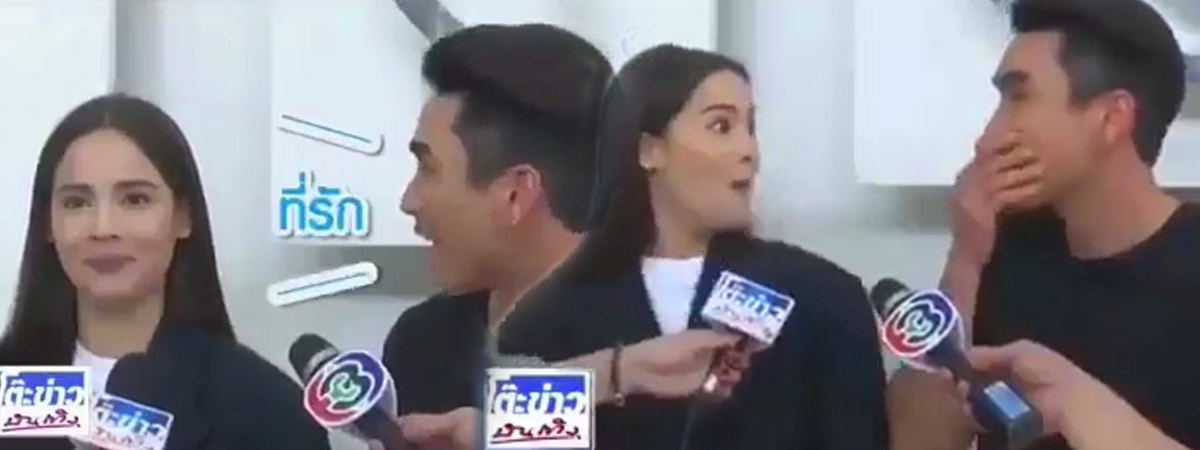 อย่างล่าสุด (5 กันยายน 2562) ที่ทั้งคู่ไปสัมภาษณ์ร่วมกันในรายการ โต๊ะข่าวบันเทิง กับประเด็นภาพหวานที่มีคนไปเห็นความมุ้งมิ้งระหว่างควงแขนกันไปทำบุญที่ ญาญ่า ก้มลงไปพับขากางเกงให้ ณเดชน์ แถมยังทาเล็บเท้าคู่กัน พร้อมโปรโมตละครของอีกฝ่ายที่กำลังจะออนแอร์ในเร็ว ๆ นี้ด้วย ซึ่งในระหว่างสัมภาษณ์ ก็ไม่รู้ว่าเป็นเพราะความเคยชินหรืออะไร ทำให้ ณเดชน์ หลุดเรียก ญาญ่า ว่า ที่รัก ออกกล้องกลางวงสัมภาษณ์ ทำเอาฝ่ายหญิงและนักข่าวถึงกับชะงัก เหวอกันไปเลย แต่ที่เหวอแรงที่สุดก็คงจะเป็น ญาญ่า ที่สะดุ้งแรง แถมยังทำตัวไม่ถูก ถึงกับหลุดหัวเราะเสียงดังออกมาเลยทีเดียว
