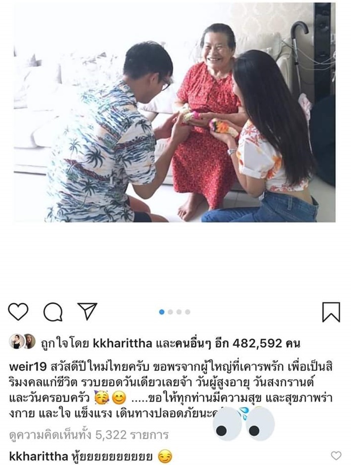แต่ล่าสุด (7 กันยายน 2562) เมื่อย้อนดูโพสต์เก่า ๆ ของหนุ่มเวียร์ก็พบว่า เมื่อวันที่ 14 เมษายน ที่ผ่านมา ตอนที่เวียร์ไปบ้านเบลล่า เพื่อนำพวงมาลัยดอกมะลิไปรดน้ำดำหัวคุณยายและคุณแม่ของเบลล่า และได้โพสต์รูปพร้อมกับครอบครัวของเบลล่าด้วย ซึ่งก็พบว่า ชิงชิง เข้ามาคอมเมนต์ในโพสต์ดังกล่าวเช่นกัน ระบุว่า "หู้ยยยยยยยยยย" มาพร้อมอีโมจิยิ้มมุมปาก