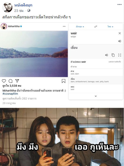 เปิดสกิลความเผือกขั้นเทพของชาวเน็ต โยงรูปวิวริมน้ำของ ชิงชิง คริษฐา ที่บอกหลงรักเข้าแล้ว กับความหมายของชื่อเล่น เวียร์ ศุกลวัฒน์ ที่ Weir แปลว่าเขื่อน สงสัยโพสต์ของชิงชิงมีนัยแอบแฝงหรือไม่