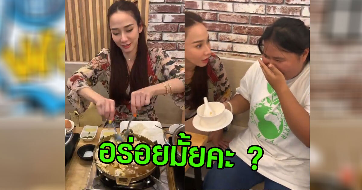 เป็นซุปตาร์สาวที่มีโมเมนต์น่ารัก ๆ ออกมาให้เห็นอยู่ตลอด สำหรับ อั้ม พัชราภา ไชยเชื้อ อย่างล่าสุด มีคลิปขณะสาวอั้มกำลังโชว์ลีลาผัดข้าว พอเสร็จปุ๊บเจ้าตัวก็ชิมเอง แล้วก็ชมตัวเองว่า อร่อยมาก ฝีมืออั้มอร่อยมากจริง ๆ ก่อนพูดต่อว่า ไม่เชื่อเหรอ อั้มเลยหันไปหาน้อง ๆ โต๊ะข้าง ๆ แล้วบอกว่าจะให้ชิม ซึ่งต้องบอกเลยว่า จังหวะซิตคอมมาก ฮากลิ้ง