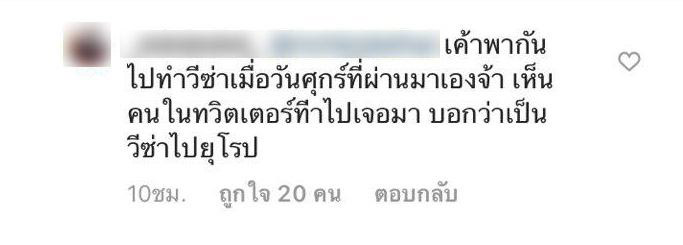 นอกจากนี้ ยังมีแฟนคลับคอมเมนต์เผยว่า "เมื่อวันศุกร์ที่ผ่านมา มีคนไปทำวีซ่า เห็นเวียร์และเบลล่าพากันไปทำวีซ่ามาด้วย โดยระบุว่าเป็นวีซ่าไปยุโรป" งานนี้แฟนคลับตั้งตารอดูทริปสวีตอินยุโรปของทั้งคู่กันแล้ว และยังมีโพสต์อื่น ๆ ของสาวเบลล่าอีก ที่ช่วงนี้หนุ่มเวียร์เข้ามาคอมเมนต์อยู่บ่อย ๆ เรียกได้ว่ากระแสดราม่าไม่มีผลกับทั้งคู่เลยจริง ๆ ยังคงเสิร์ฟคอมเมนต์หวานถึงกันตลอด ๆ