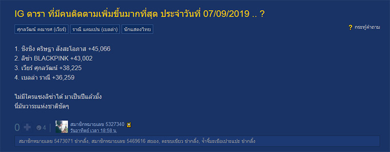 แต่ถึงจะโดนโจมตีขนาดไหน แต่ก็ต้องยอมรับว่าข่าวนี้ทำให้หลายคนรู้จักกับเธอมากขึ้น เพราะตั้งแต่มีกระแสข่าวดราม่าดังกล่าว ก็ส่งผลให้ยอดติดตามในอินสตาแกรมของ ชิงชิง พุ่งขึ้นแบบก้าวกระโดด จากสถิติของเว็บไซต์ thailandsuperstar เดิมอยู่ที่ประมาณ 380,000 จนตอนนี้ อยู่ที่ประมาณ 490,000 แล้ว ซึ่งยอดที่พุ่งเป็นแสนนี้ก็เกิดขึ้นภายในเวลาไม่กี่วันเท่านั้น หลัง สาวเบลล่า ออกมาสัมภาษณ์เมื่อช่วงสุดสัปดาห์ที่แล้ว ส่วนในช่วง 10 วันนี้ ชื่อของ ชิงชิง ก็ตีตื้นติดอันดับสถิติดาราไทยที่มีคนติดตามมากที่สุดในช่วงต้นเดือนกันยายน