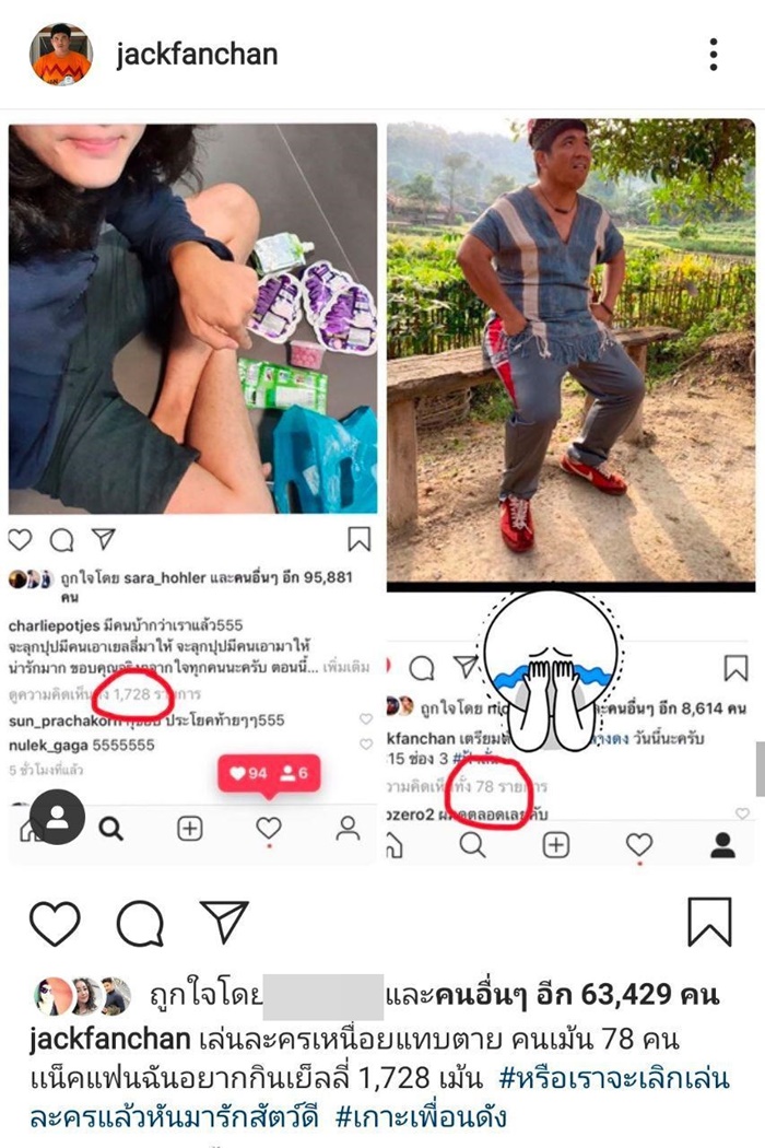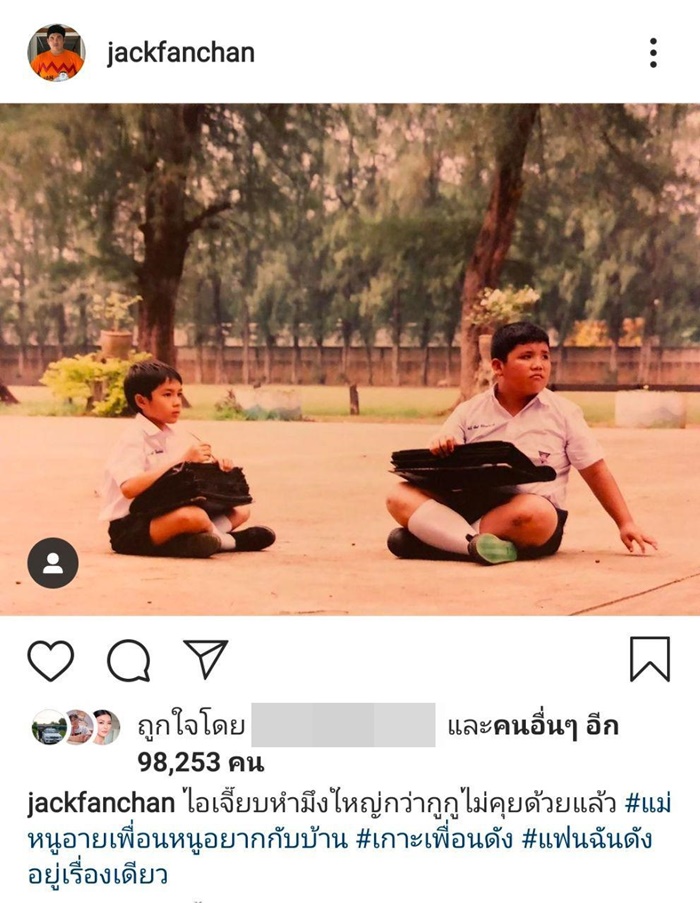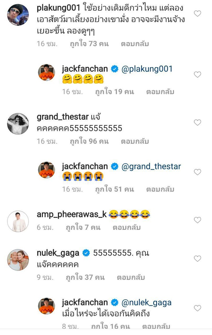 หลังจากที่ แน็ก ชาลี กลายเป็นหนุ่มสุดฮอตที่ได้รับความสนใจอย่างมากในโลกโซเชียล เพื่อนที่โตมาด้วยกันอย่าง แจ็ค แฟนฉัน ก็มีโพสต์ฮา ๆ ถึงแน็กออกมาเป็นระยะ พร้อมแฮชแท็ก #เกาะเพื่อนดัง ซึ่งก็เรียกเสียงฮาให้กับเพื่อนดาราและแฟน ๆ เป็นอย่างมาก อย่างก่อนหน้านี้ ก็มีตัดพ้อว่า หรือเราควรจะเลิกเล่นละครแล้วหันมารักสัตว์ดี