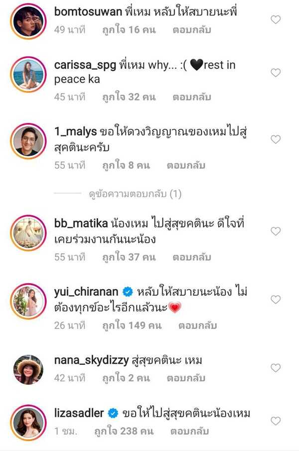 เพื่อนดารา คนดังในวงการ ร่วมไว้อาลัย เหม ภูมิภาฑิต หลังมีข่าวผูกคอตายภายในคอนโด หลายคนคอมเมนต์ใต้รูปสุดท้ายใน IG ขอให้ไปสู่สุคติ