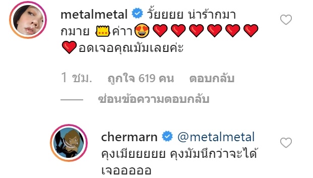 งานนี้สาวเมทัล ภรรยาที่น่ารักของหนุ่มโดม ก็ไม่มีหึงหวง แถมเข้ามาคอมเมนต์ชมด้วยว่า "วั้ยยยย น่าร้ากมากมายค่าา อดเจอคุณมัมเลยค่ะ" สาวพลอย ก็ตอบกลับว่า "คุงเมียยยยย คุงมัมนึกว่าจะได้เจอออออ" เรียกว่า เป็นมิตรภาพที่น่ารักมาก ๆ เลย