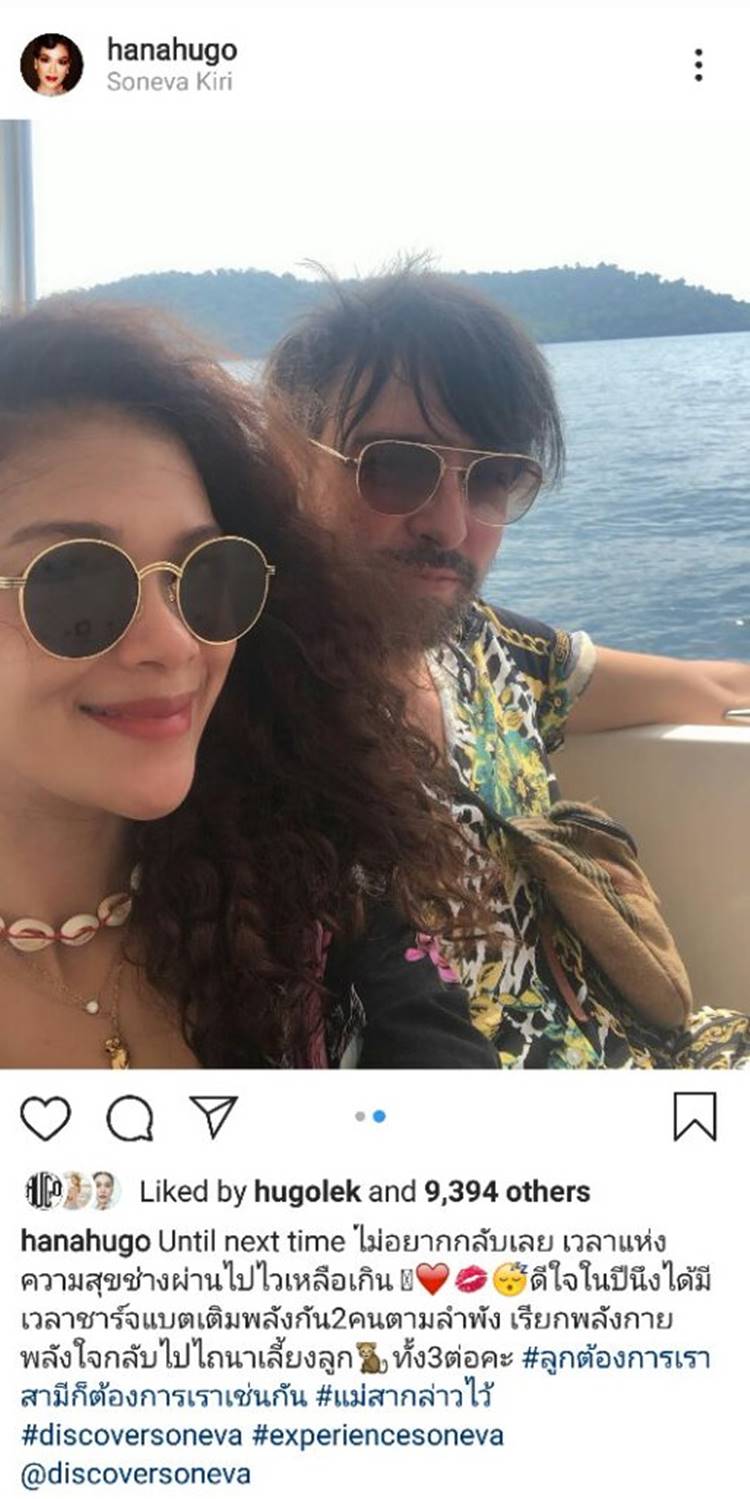 และในวันที่ 28 กันยายน 2562 สาวฮาน่าได้โพสต์รูปคู่ลงบนอินสตาแกรม พร้อมแคปชั่นน่ารักว่า "ไม่อยากกลับเลย เวลาแห่งความสุขช่างผ่านไปไวเหลือเกิน ดีใจในปีนึงได้มีเวลาชาร์จแบต เติมพลังกัน 2 คนตามลำพัง เรียกพลังกายพลังใจกลับไปไถนาเลี้ยงลูกทั้ง 3 ต่อค่ะ #ลูกต้องการเราสามีก็ต้องการเราเช่นกัน #แม่สากล่าวไว้"