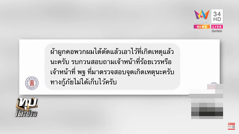 ล่าสุด (28 กันยายน 2562) รายการทุบโต๊ะข่าว รายงานว่า จากการสอบถาม ป่อเต็กตึ๊ง บางเขน ยืนยันว่าทางกู้ภัยไม่ได้เก็บเอาไว้ โดยได้ตัดแล้วเอาไว้ที่จุดเกิดเหตุ และให้สอบถามไปยังเจ้าหน้าที่ร้อยเวร หรือเจ้าหน้าที่พิสูจน์หลักฐานที่มาตรวจสอบดูว่ามีการเก็บไว้หรือไม่