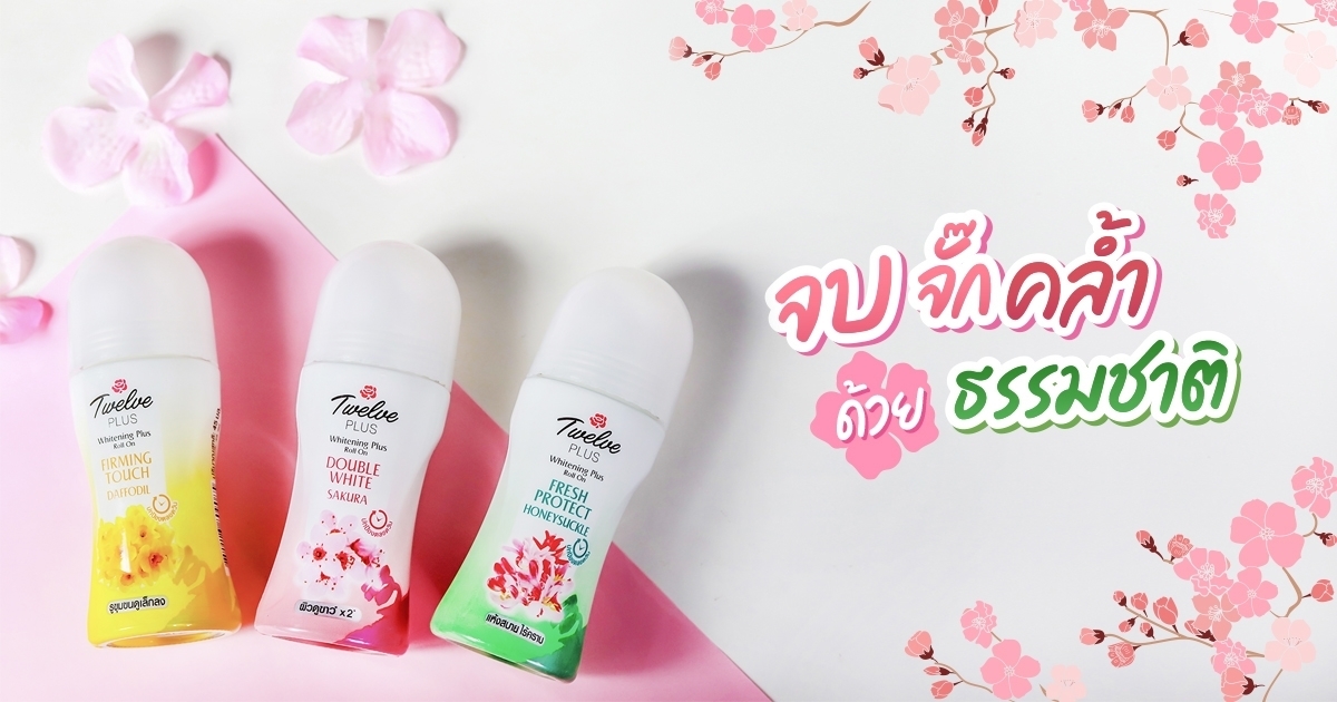 ไลฟ์สไตล์ที่เร่งรีบของสาว ๆ สมัยนี้ หากต้องเตรียมสมุนไพร ดอกไม้แห้ง หรือน้ำมันหลากชนิดอย่างวิธีที่แนะนำไปข้างต้นอาจจะยุ่งยากสักหน่อย แต่ไม่ต้องกังวลไป เพราะยังมีวิธีอื่นที่ง่ายกว่านั้น คือการเปลี่ยนมาใช้โรลออนที่มีส่วนผสมจากดอกไม้ธรรมชาติแทน อย่าง ทเวลฟ์ พลัส ไวท์เทนนิ่ง พลัส โรลออน ดับเบิล ไวท์ (Twelve Plus Whitening Plus Roll On Double White) โรลออนระงับกลิ่นกายสูตรอ่อนโยนตัวนี้ บอกเลยว่าไม่มีส่วนผสมของแอลกอฮอล์ที่ทำให้รักแร้ระคายเคืองหรือดำคล้ำ แต่ยังอัดแน่นไปด้วยเอสเซนส์จากดอกซากุระบวกกับวิตามินซีที่ช่วยปรับผิวใต้วงแขนให้ดูขาวกระจ่างใส x2 ลดการเกิดขนคุดและผิวหนังไก่ แห้งไวไม่เหนียวเหนอะหนะ แถมยังมีกลิ่นหอมยาวนานของหัวน้ำหอมแท้ ช่วยปกป้องผิวใต้วงแขนให้มั่นใจได้ตลอดวันเลยทีเดียว