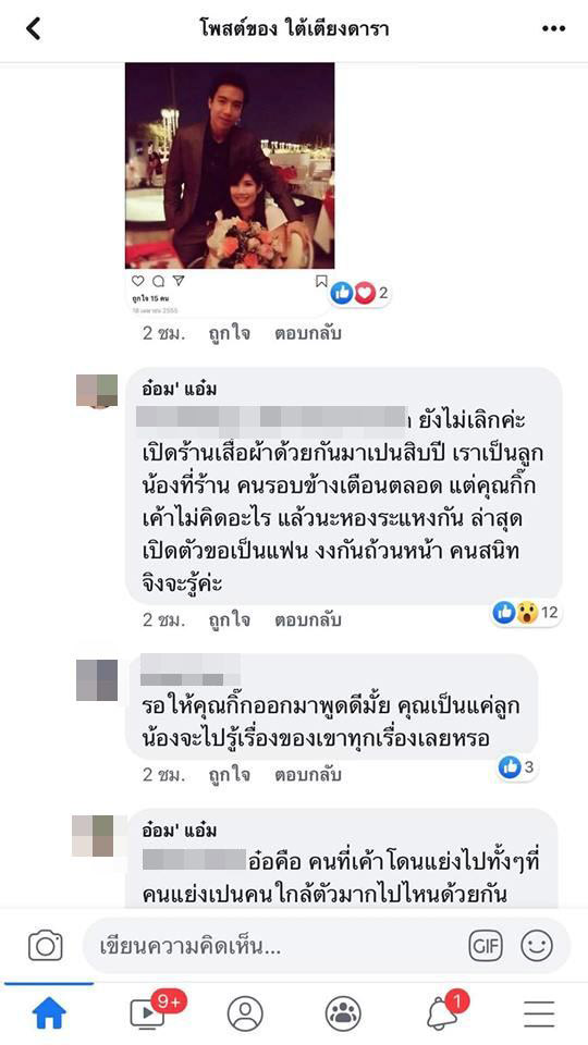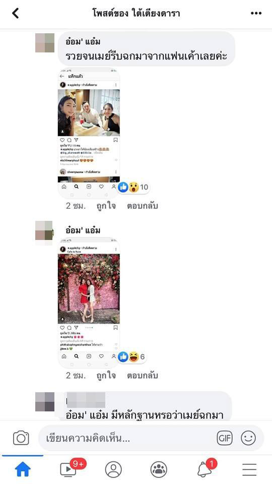 โดยที่สาวอ๋อมแอ๋ม ได้ลงภาพในคอมเมนต์ของเพจดัง ซึ่งอ๋อมแอ๋มบอกว่า ไฮโซกิ๊กและไฮโซบิ๊กนั้น เปิดร้านเสื้อสูทด้วยกันมา และคบหากันนับ 10 ปี ตนเป็นลูกน้องที่ร้าน คนรอบข้างก็คอยเตือนไฮโซกิ๊กตลอด แต่ไฮโซกิ๊กไม่ได้คิดอะไร จนกระทั่งเมย์ พิชญ์นาฏ เปิดตัวคบกับไฮโซบิ๊ก จึงทำให้คนรอบข้างงงกันถ้วนหน้า
