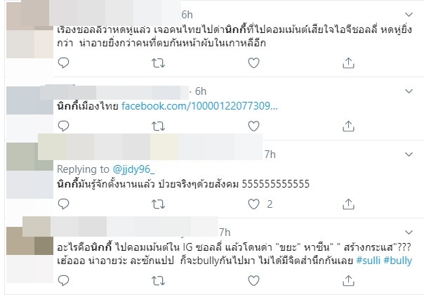 อย่างไรก็ตาม เมื่อกระแสออกมาแบบนี้ ก็ถูกชาวเน็ตตีกลับ และมองว่านิกกี้เองไม่ได้หาซีน หากแต่นิกกี้ตามฟอลโลไอดอลเกาหลีอยู่แล้ว อยากให้ทุกคนได้ตั้งสติ และการเข้าไปต่อว่านิกกี้แบบนี้ ก็ไม่ต่างอะไรจากการบูลลี่ ซึ่งเป็นสิ่งที่ซอลลี่ พบเจอมาโดยตลอด