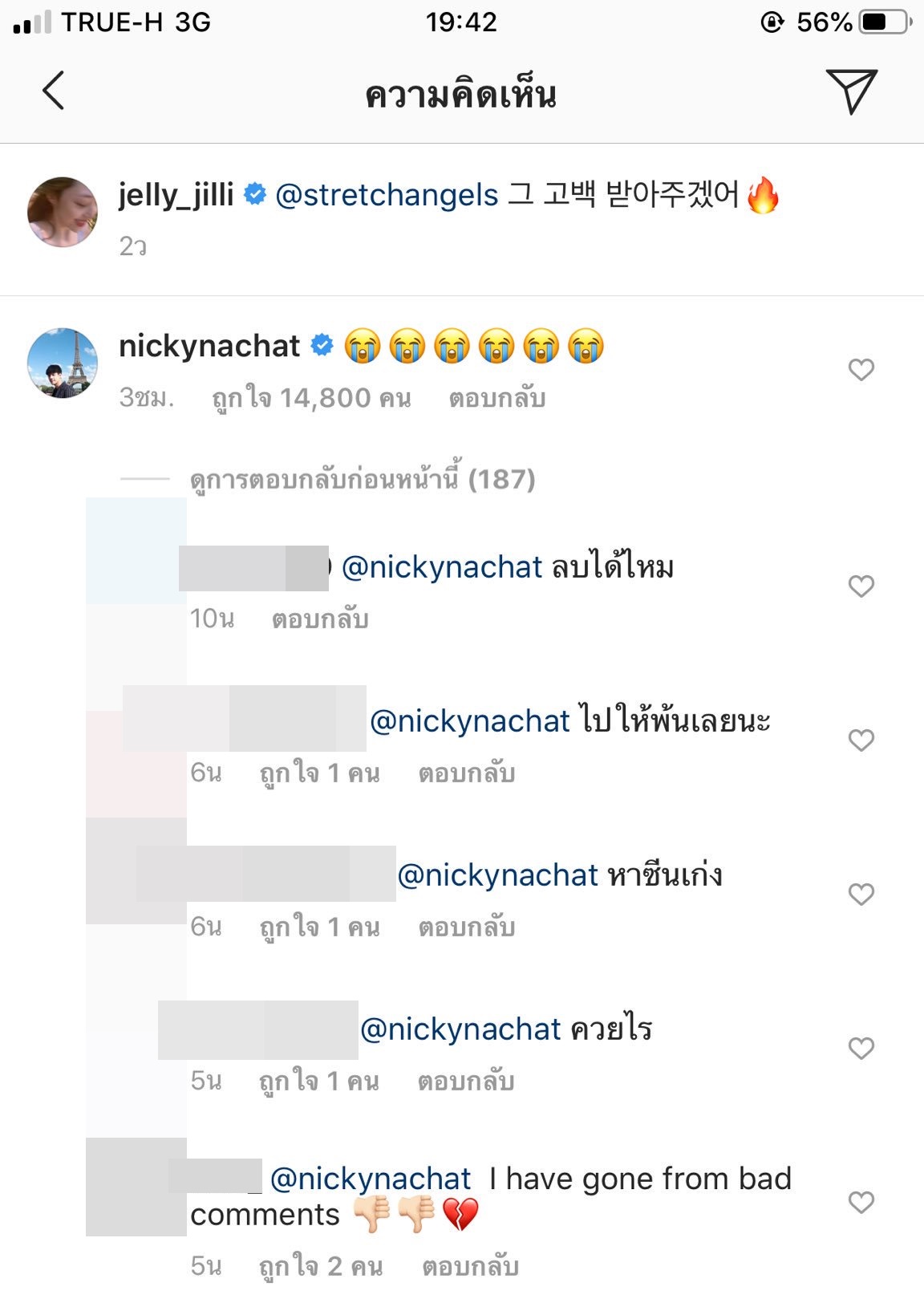 อย่างไรก็ตาม จากการตรวจสอบล่าสุด พบว่า นิกกี้ ณฉัตร ได้ลบคอมเมนต์ดังกล่าวออกไปเรียบร้อยแล้ว