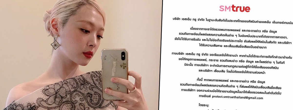 ล่าสุด (16 ตุลาคม 2562) SM True ก็ได้ออกมาเผยจดหมายประกาศเตือนเหล่าชาวเน็ตไทยที่กุข่าวมั่ว รวมไปถึงคอมเมนต์ในเชิงลบ หมิ่นประมาท พาดพิงถึงศิลปินในสังกัด SM Entertainment ด้วย โดยประกาศมีดังนี้