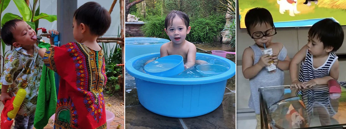 น้องสายฟ้า พายุ ที่บ้านคุณยาย มีความสุขง่าย ๆ กับของเล่นรอบตัว เล่นน้ำในกะละมัง ใส่แว่นตากลับด้าน #วิถีลูกชายเน็ตไอด้อน