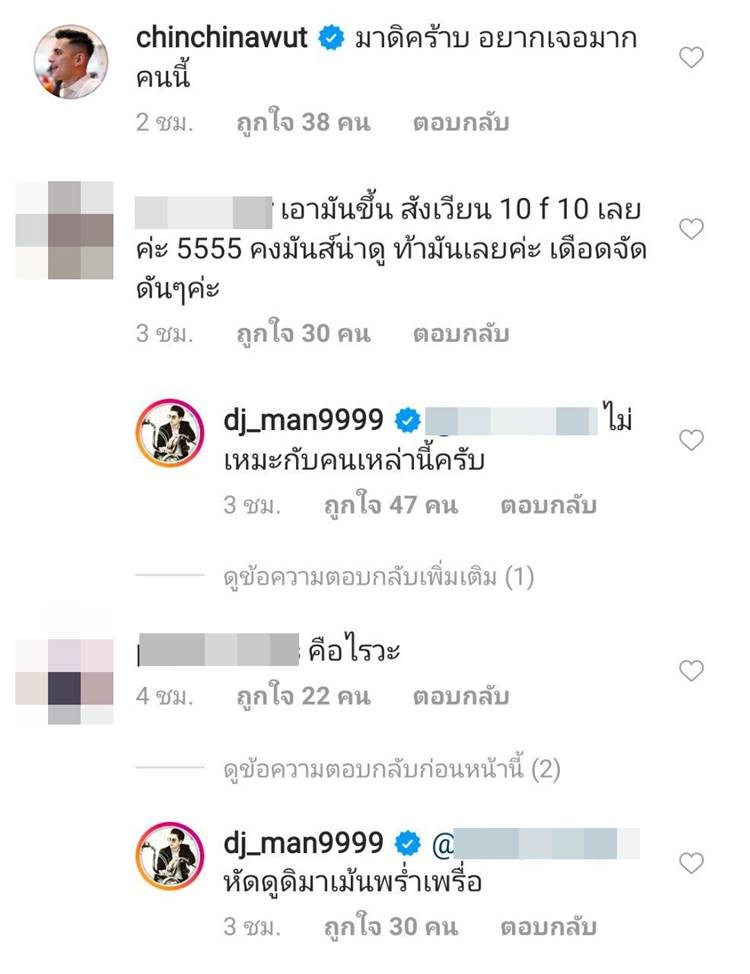 นอกจากนี้ ยังมีคนดังอีกหลายคน ที่ร่วมแสดงความไม่พอใจถึงหนุ่มคนดังกล่าว อาทิ ชิน ชินวุฒ ที่คอมเมนต์ใน IG ดีเจแมน ว่า "มาดิคร้าบ อยากเจอมากคนนี้" และ ไอซ์ ศรัณยู ที่บอกว่า "เพิ่งดู clip ตะกี้เองพี่ สุดมาก ๆ ๆ ต้องพบแพทย์ แต่ก่อนพบแพทย์ อยากให้พบพี่ก่อน"