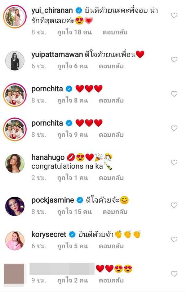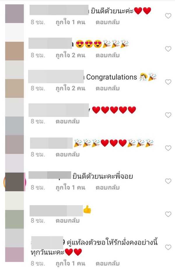 งานนี้ก็มีทั้งเพื่อน ๆ ในวงการ และแฟน ๆ เข้าไปร่วมคอมเมนต์แสดงความยินดีกับ จอย ศิริลักษณ์ กันอย่างคับคั่ง ส่วนโพสต์ดังกล่าวจะเป็นการประกาศข่าวดีเรื่องการหมั้นหรือแต่งงานหรือไม่นั้น ต้องรอฟังจากปากเจ้าตัวกันอีกครั้งค่ะ