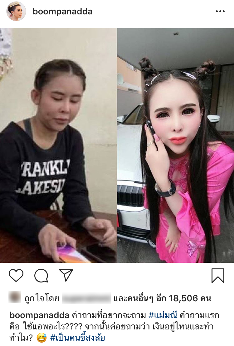 ล่าสุด (2 พฤศจิกายน 2562) ภายหลังการจับกุม มีการเผยแพร่ภาพแม่มณีและแฟนหนุ่ม ขณะถูกควบคุมตัว ทางด้าน บุ๋ม ปนัดดา มีการโพสต์ภาพแม่มณี เปรียบเทียบกันซ้าย-ขวา ซึ่งพบว่าหน้าตาไม่ตรงปก พร้อมระบุว่า "คำถามที่อยากจะถาม #แม่มณี คำถามแรกคือใช้แอปฯ อะไร ? จากนั้นค่อยถามว่า เงินอยู่ไหน และทำทำไม ? #เป็นคนขี้สงสัย"