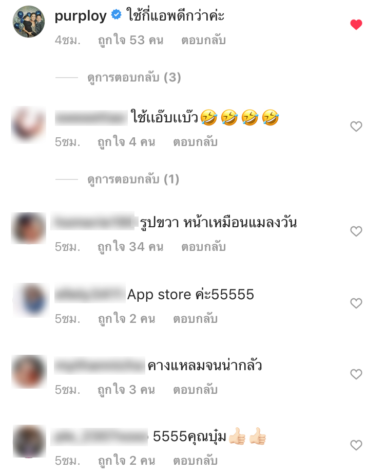 งานนี้ชาวเน็ตเข้ามาแสดงความคิดเห็นกันรัว ๆ อย่างสาว พลอย พลอยพรรณ อดีตภรรยาของหนุ่ม ปีเตอร์ ก็เข้ามาคอมเมนต์ ให้ถามว่าใช้กี่แอปฯ ดีกว่า บ้างก็แซวแม่มณีว่าใช้ทั้งหมดใน App Store ซึ่งหลายคนก็บอกถูกใจคำถามของ บุ๋ม ปนัดดา อย่างมาก เพราะคาใจเหมือนกันว่าทำไมรูปไม่ตรงปกขนาดนี้