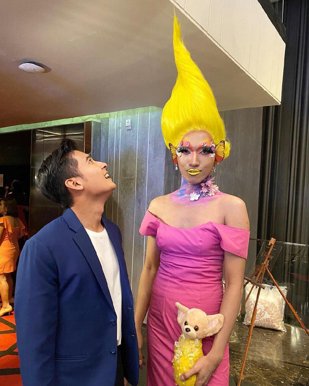 โดย มาดามมด ก็เป็นอีกหนึ่งแขกคนสำคัญที่มาร่วมแสดงความยินดีภายในงาน ซึ่งปกติหลายคนมักจะเห็นว่า มาดามมด แต่งตัวมาในแนวล้ำไม่ซ้ำใครตลอด งานนี้ก็เช่นกัน เจ้าตัวจัดหนักจัดเต็มทั้งเสื้อผ้าหน้าผม ด้วยคอนเซ็ปต์วิกผมสุดล้ำสีเหลือง ที่ตั้งเด่นเป็นสง่า สูงจนต้องเงยหน้ามอง แถมหมากระเป๋าเข้ากันกับชุดสีชมพูอย่างดี