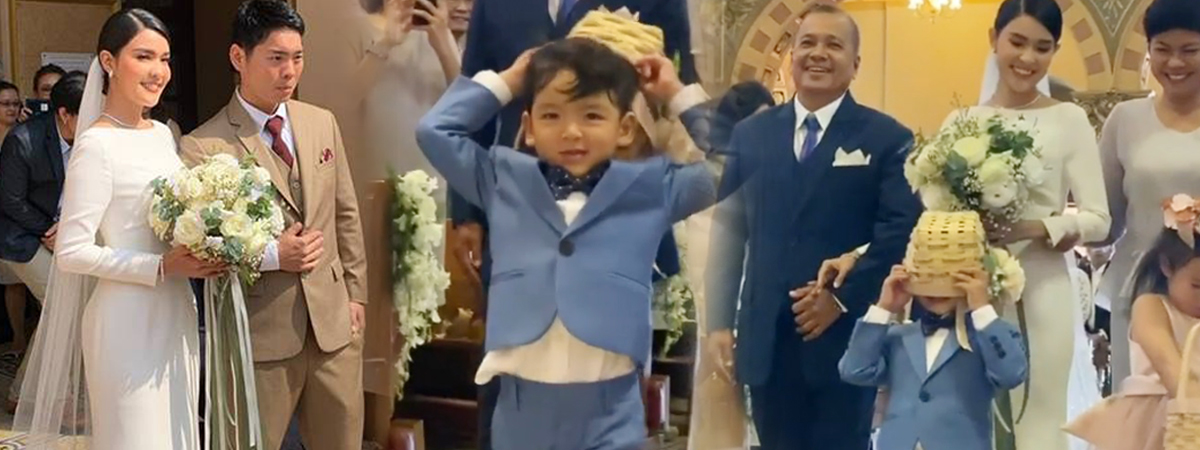 อย่างไรก็ตาม ทางฝั่งของ น้องภู ก็ผ่านไปด้วยดี ไม่มีปัญหาอะไร แต่ดูเหมือนทางฝั่ง น้องเภา จะมีเรื่องให้ลุ้นนิดหน่อย เพราะคุณแม่ เอ๋ พรทิพย์ บรีฟลูกให้โปรยดอกไม้ระหว่างเดินเข้าโบสถ์ ซึ่งลูกก็โปรยจริง ๆ โดยไม่เงยหน้าขึ้นมาจากตะกร้าเลย แถมลืมบอกอีกว่า ถ้าดอกไม้หมดให้เดินถือตะกร้าเฉย ๆ ลูกชายก็เลยเอาตะกร้ามาครอบศีรษะซะเลย ทำให้แม่เอ๋ต้องดุลูกชายเล็กน้อย