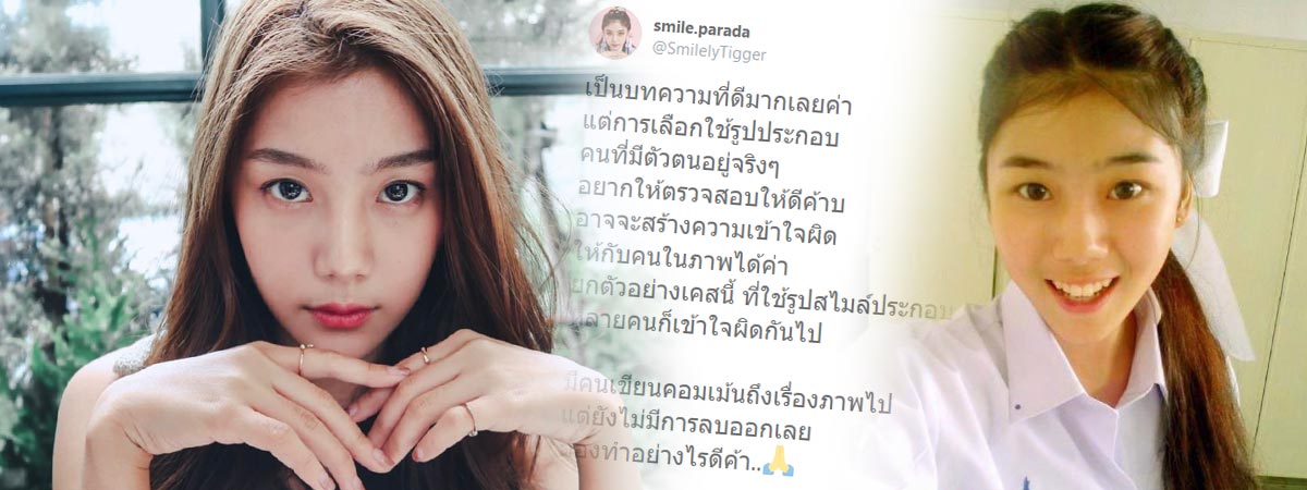 ล่าสุด (10 พฤศจิกายน 2562) สไมล์ ก็ได้ออกมาโพสต์ถึงเรื่องนี้ผ่านทวิตเตอร์ส่วนตัวว่า "เป็นบทความที่ดีมากเลยค่ะ แต่การเลือกใช้รูปประกอบ คนที่มีตัวตนอยู่จริง ๆ อยากให้ตรวจสอบให้ดีค้าบ อาจจะสร้างความเข้าใจผิดให้กับคนในภาพได้ค่ะ ยกตัวอย่างเคสนี้ที่ใช้รูปสไมล์ประกอบ หลายคนก็เข้าใจผิดกันไป มีคนเขียนคอมเมนต์ถึงเรื่องภาพไปแต่ยังไม่มีการลบออกเลย ต้องทำอย่างไรดีคะ"
