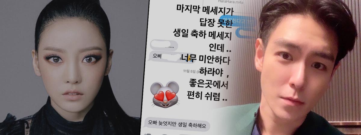 รวมไปถึงนักร้องหนุ่มอย่าง ชเวซึงฮยอน หรือ ท็อป (T.O.P) สมาชิกวง BIGBANG เพื่อนสนิทอีกคนของ คูฮารา ที่ได้ออกมาแสดงความเสียใจต่อเรื่องที่เกิดขึ้น โดย ท็อป ได้ออกมาเปิดเผยผ่านไอจีสตอรี่กับภาพข้อความแชตสุดท้ายที่ คูฮารา ส่งมาให้เพื่ออวยพรวันเกิดให้กับเขา แต่นักร้องหนุ่มกลับไม่ได้ตอบกลับข้อความดังกล่าว ซึ่งเรื่องนี้ก็ทำให้เจ้าตัวรู้สึกเสียใจอยู่ไม่น้อย