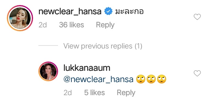 ขณะที่ นิวเคลียร์ หรรษา น้องสาวของ อุ้ม ก็มีการเข้ามาเขียนคอมเมนต์แซวว่า "มะละกอ" งานนี้ สาวอุ้ม เลยส่งอีโมจิมองบนกลับไปซะเลย