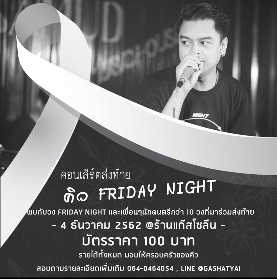 เพื่อนศิลปินรวมตัวจัดคอนเสิร์ตส่งท้าย คิว ภูริวัฒน์ รายได้ทั้งหมดมอบให้คุณแม่ของคิว สุดอาลัย... ขอทำเพื่อเพื่อนเป็นครั้งสุดท้าย
