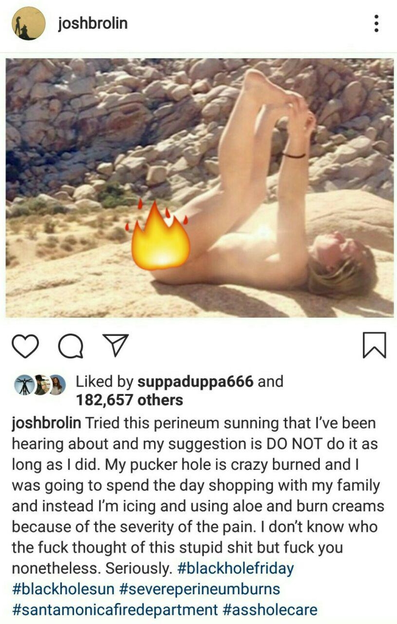จากการรายงานของเว็บไซต์ Slate เมื่อวันที่ 1 ธันวาคม 2562 ระบุว่า จอชได้โพสต์อินสตาแกรมรีวิวการทำ perineum sunning ที่กลายเป็นประสบการณ์อันเลวร้ายที่สุดครั้งหนึ่งในชีวิต เพราะนอกจากจะไม่ได้รับพลังงานอะไรใด ๆ ที่ช่วยให้ชีวิตดีขึ้นแล้ว ยังทำให้ "ตรงนั้น" พังไหม้เกรียมไปทุกอณู...