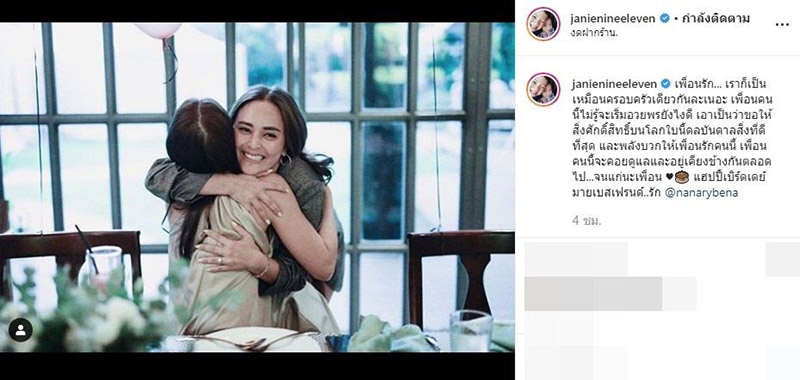 อย่างไรก็ตาม เจนี่ก็ได้อวยพรนานา และบอกว่าสำหรับเจนี่แล้ว นานาก็เหมือนเป็นครอบครัวเดียวกัน ส่วนวุ้นเส้นเองก็บอกว่า รู้จักและรักกับนานามา 20 ปี ทำอะไรก็เข้าใจกัน ทำธุรกิจด้วยกันก็ไม่เคยทะเลาะ ขอให้นานามีความสุขตลอดไป