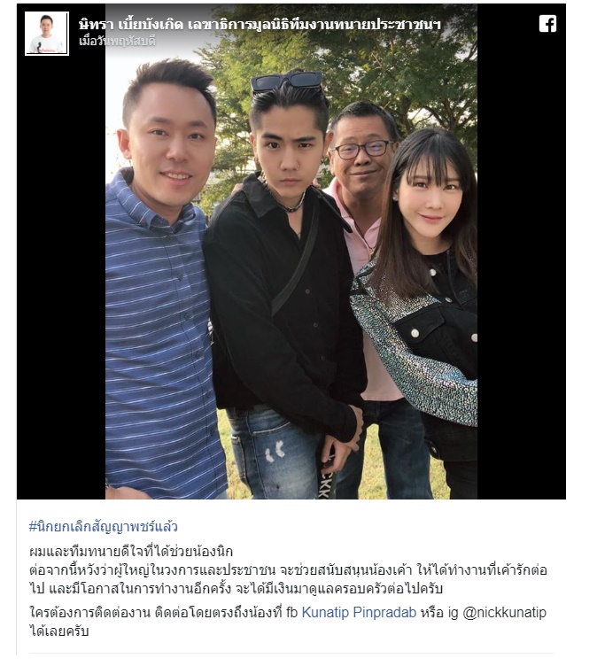อ่านข่าว : นิก คุณาธิป ประกาศเป็นอิสระ ! ยกเลิกสัญญา พชร์ อานนท์ สำเร็จแล้ว