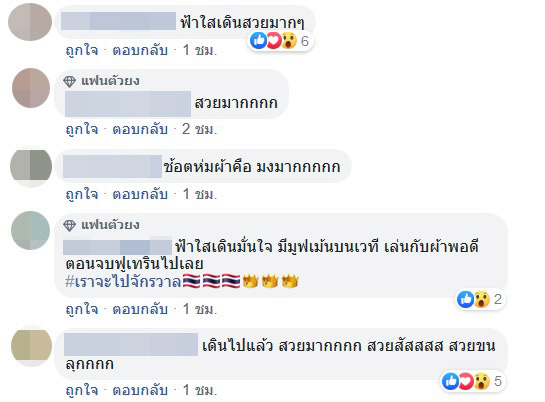 ทั้งนี้ แฟนนางงามต่างก็ชื่นชมความฉลาดในการใช้ผ้าให้เป็นประโยชน์ของฟ้าใส เพราะทำให้เจ้าตัวดูสวยโดดเด่นเป็นนางพญาขึ้นมาจริง ๆ เรียกว่าถ้ามงไม่ลงก็จะงงมาก ๆ