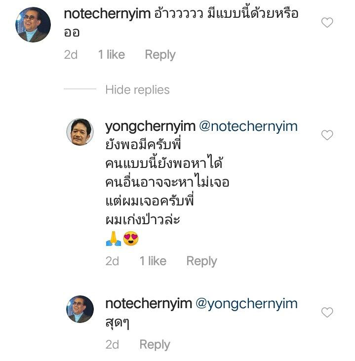 ขณะที่ โน้ต เชิญยิ้ม รุ่นพี่ตลกร่วมวงการ เข้ามาคอมเมนต์ถามว่า แบบนี้ก็มีด้วยหรือ ? โย่ง เชิญยิ้ม ก็ตอบกลับไปว่า "ยังพอมีครับพี่ คนแบบนี้ยังพอหาได้ คนอื่นอาจจะหาไม่เจอ แต่ผมเจอครับพี่ ผมเก่งเปล่าล่ะ"