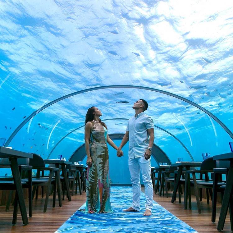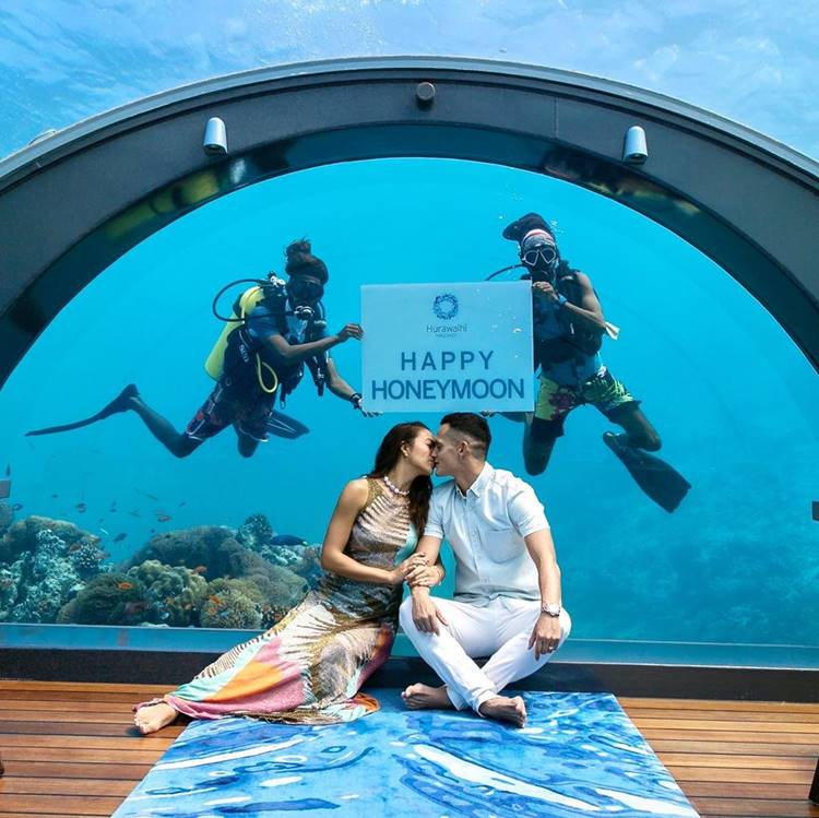 งานนี้เจ้าบ่าว-เจ้าสาวป้ายแดง ก็ไม่ลืมที่จะเก็บภาพหวาน ๆ จากทริปฮันนีมูนมาฝากกันด้วย เรียกว่าหวานฉ่ำ ดินเนอร์ใต้ท้องทะเล มีนักดำน้ำถือป้าย "HAPPY HONEYMOON" มาร่วมแสดงความยินดีด้วย แถมจุมพิตบนชิงช้ากลางทะเล สวีตสุด โลกนี้มีเพียงเราสองคนจริง ๆ