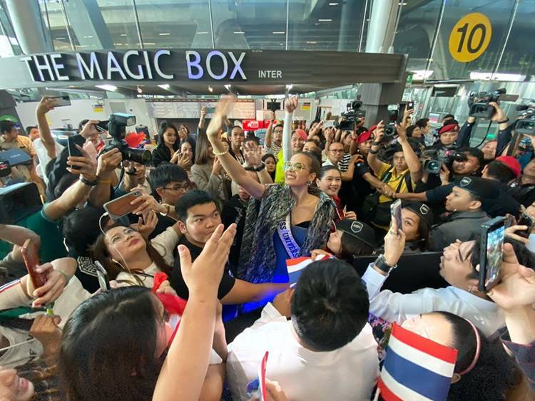 เดินทางกลับถึงประเทศไทยเป็นที่เรียบร้อยแล้ว สำหรับ ฟ้าใส ปวีณสุดา ดรูอิ้น Miss Universe Thailand 2019 หลังเดินทางไปประกวด Miss Universe 2019 พร้อมทำผลงานได้ดีที่สุดกับการเป็น Top 5 และเมื่อเดินทางมาถึงสนามบินสุวรรณภูมิ ในช่วงบ่ายของวันที่ 12 ธันวาคม 2562 ก็มีครอบครัว สื่อมวลชน และแฟนนางงาม ไปรอต้อนรับเป็นจำนวนมาก