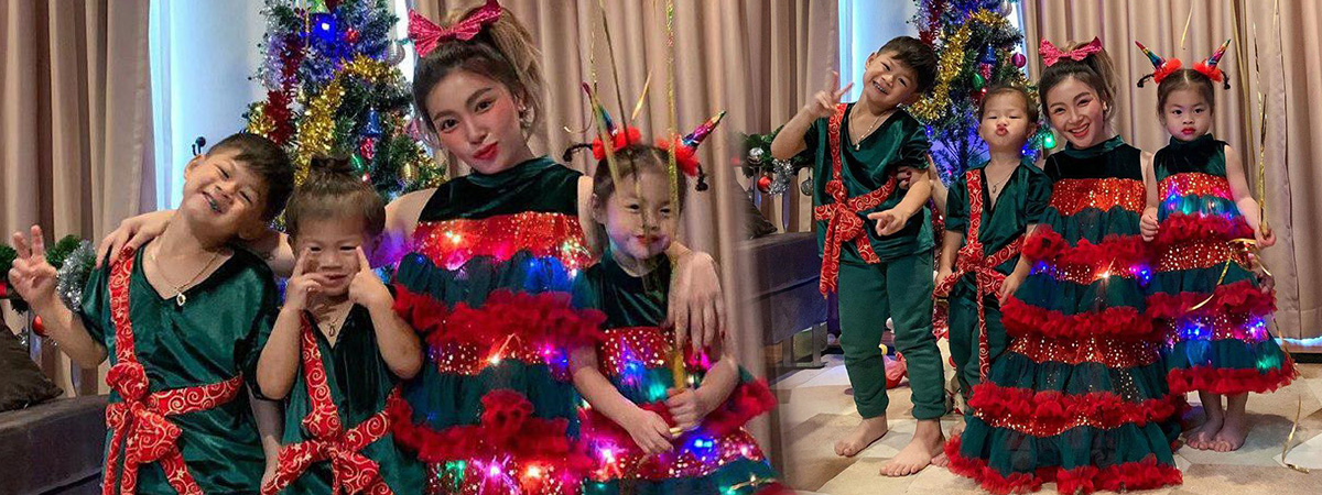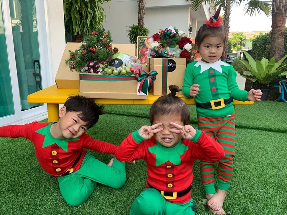 กาย-ฮารุ พา 3 ยอดกุมาร แต่งตัวต้อนรับเทศกาลคริสต์มาสล่วงหน้า น้องไนร่า แต่งเป็นต้นคริสต์มาสเหมือนคุณแม่ น้องคีริน และน้องเอเดน ขอเป็นกล่องของขวัญ