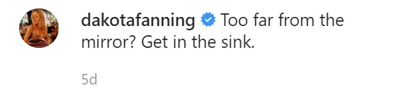 ดาโกต้า แฟนนิ่ง (Dakota Fanning) โพสต์ภาพนู้ดลงอินสตาแกรม ขณะนั่งในอ่างล่างหน้า หน้ากระจก แต่งานนี้ไม่เน้นความเซ็กซี่ เพราะสีหน้าเจ้าตัวเพลียมาก ด้าน แอล แฟนนิ่ง (Elle Fanning) น้องสาว รีบเข้ามาเมนต์ทวงเครดิต