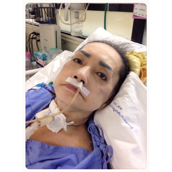 ยุ้ย : ไม่ค่ะ ไม่เคย เห็นว่าเราเข้มแข็งแค่ไหน คนที่เข้มแข็งสุดคือแม่ แม่ไม่ยอมแพ้ เราก็ยอมไม่ได้ จะยอมแพ้ได้ยังไง ทุกครั้งที่เราไปหาคุณแม่จนถึงวันที่โพสต์รูปคุณแม่ คุณแม่ยังอ้วนท้วน ขาวผ่อง คุณแม่ไม่ได้มีวี่แววจะไม่ไหวแล้ว เราก็เลยรู้สึกว่าคุณแม่ยังสู้ ยังยิ้มขนาดนี้ เราก็สู้ ถึงบอกว่าเวลาไปเยี่ยมพยายามอย่านำ เพราะไม่อยากให้ใครร้องไห้ให้คุณแม่เห็นเลย