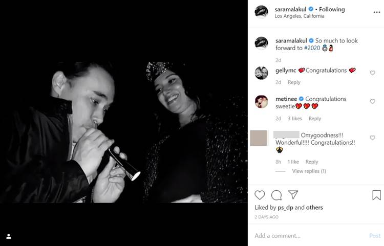 งานนี้คาดว่า ซาร่า มาลากุล มีข่าวดีพร้อมกันถึง 2 ข่าว รับปี 2020 ทั้งเรื่องการแต่งงานและการตั้งครรภ์ เตรียมตัวสู่การเป็นคุณแม่ป้ายแดง ซึ่งก็มีเพื่อน ๆ รวมถึงแฟน ๆ เข้ามาคอมเมนต์ร่วมแสดงความยินดีกันอย่างคับคั่ง
