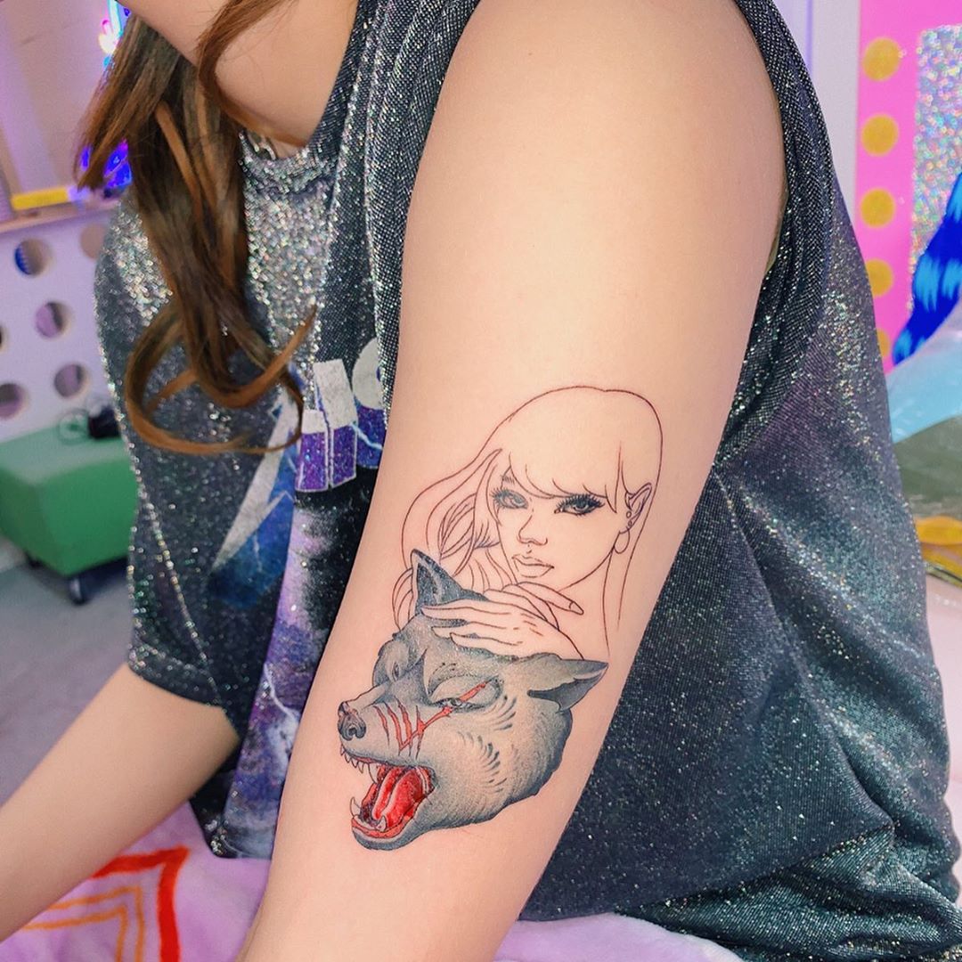 โดยพลอยชมพู ได้เผยความหมายของรอยสักครั้งนี้ ผ่านรายการ Positive Inking ที่ออกอากาศทาง MTV ที่เป็นรูปหญิงสาวผมแดง (ที่ดูคล้ายเธอ) กำลังลูบหัวสุนัขจิ้งจอกบนเวณที่แขนขวา ซึ่งเธอเผยว่ามันเป็นสัญลักษณ์เตือนตัวเองว่าจะไม่เปลี่ยนแปลงตัวเองเพื่อคนอื่น ส่วนลายสักที่หลังมือเป็นตัวอักษรภาษาอังกฤษคำว่า VENI VIDI VICI ภาษาละติน ที่แปลว่าฉันมา ฉันเห็น ฉันคิด