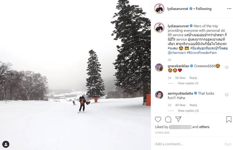 ทั้งนี้นอกจาก ลีเดีย ศรัณย์รัชต์ จะเผยภาพคู่ของ พลอย เฌอมาลย์ กับ อเล็กซานเดอร์ ให้ได้เห็นกันแบบชัด ๆ แล้ว เจ้าตัวยังได้เผยคลิปหวานของทั้งคู่ กับโมเมนต์ที่ฝ่ายชายช่วยอุ้มสาวพลอยด้วยท่าอุ้มเจ้าหญิง ก่อนพาสกีลงจากยอดเขา อย่างกับฉากในหนังเลยทีเดียว !!