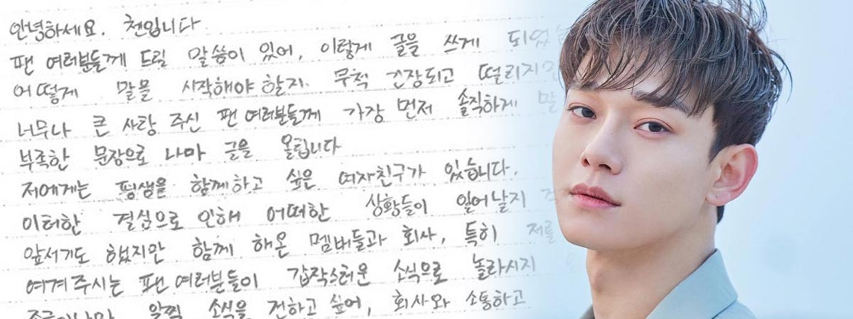 โดย เฉิน ได้โพสต์จดหมายลายมือลงใน แอพฯ แฟนคลับ ระบุว่า
