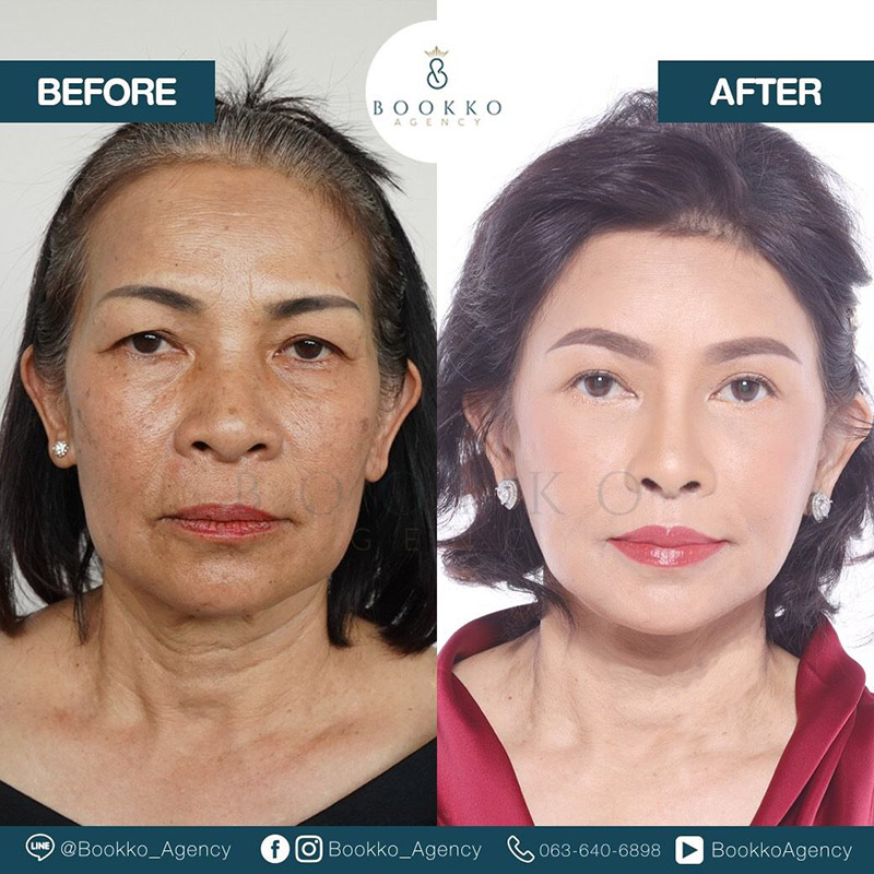 หลังทำมาก็พอใจมาก ต้นหอมยังทักเลยว่าหน้าเหมือนเขา แต่แม่ไม่สนหากชาวเน็ตถามว่าทำทำไม เพราะอายุขนาดนี้แล้ว ทำไมล่ะฉันมีเงิน เชิดค่ะ (หัวเราะ) สำหรับคนที่อยากทำศัลยกรรมแต่ไม่กล้าไม่ต้องกลัวเลยค่ะ ยิ่งทำมาทำกับ Bookko Agency ยิ่งปลอดภัย เขาดูแลดีมาก ปรึกษาฟรีหมด ถ้าไม่ว่างมาเจอตัวเป็น ๆ ก็แอดไลน์ ปรึกษาศัลยกรรมทางไลน์ออฟฟิเชียล @bookko_agency ทำกับที่นี่ปลอดภัย 100 เปอร์เซ็นต์