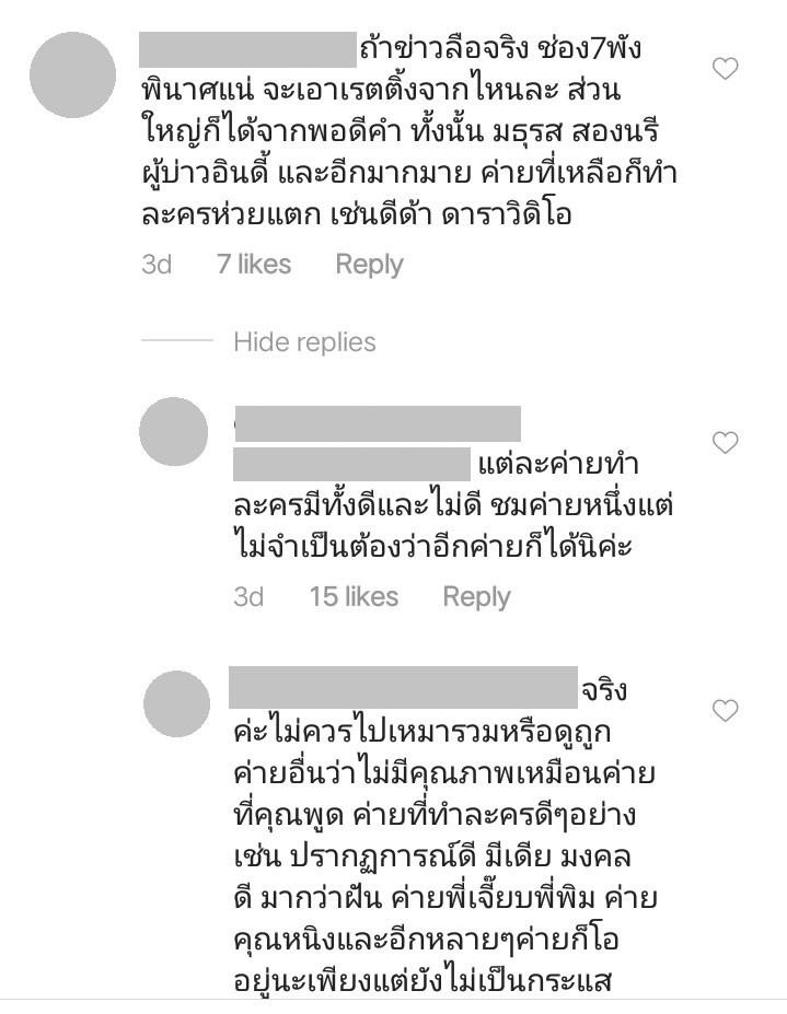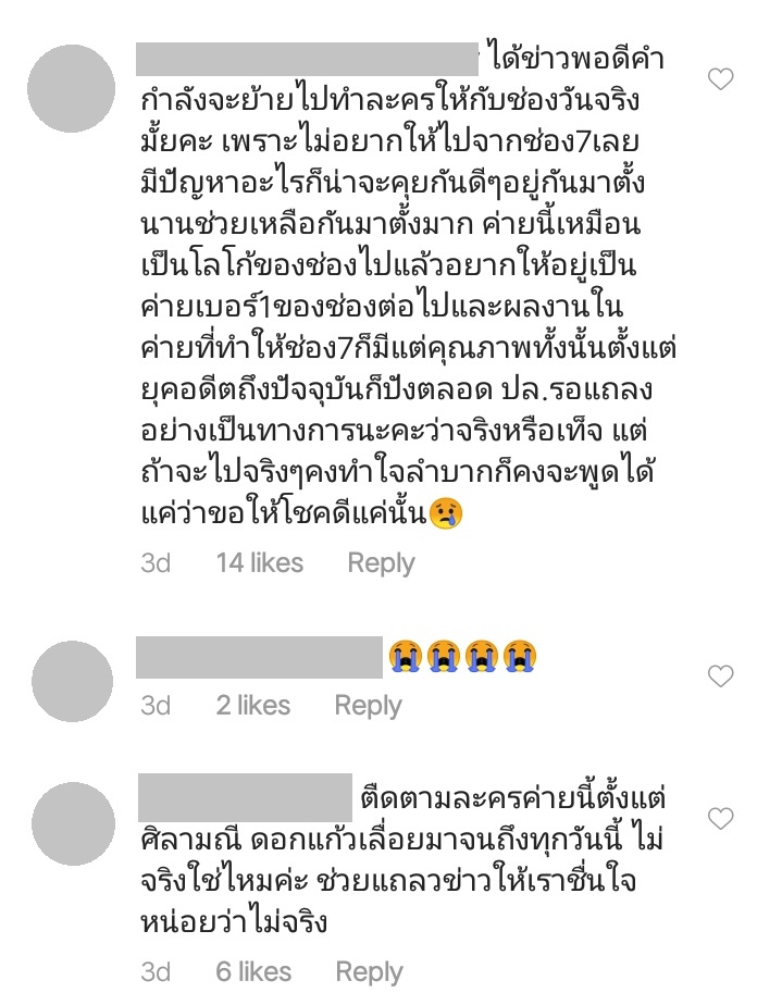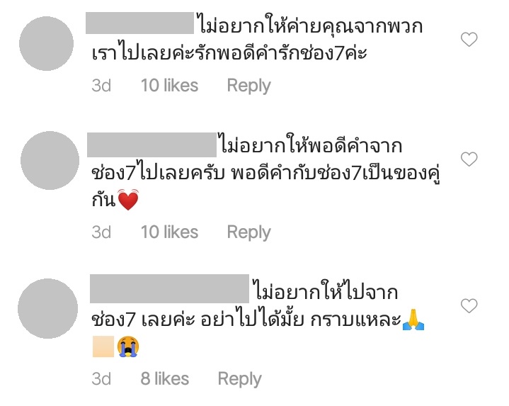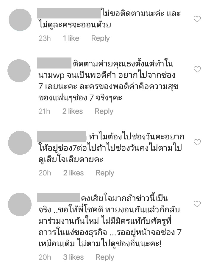 โดยหลายคนพากันโอดว่าไม่อยากให้ย้าย เพราะละครของค่ายพอดีคำ คือความสุขของแฟนละครช่อง 7 เนื่องจากทำแต่ละครสนุก ๆ ออกมาให้ชมตลอดระยะเวลาหลายปี นอกจากนี้แฟนละครส่วนหนึ่งได้แสดงความคิดเห็นว่า ถ้าหากย้ายจริงก็จะไม่ขอตามไปดู บ้างก็ขอร้องไม่ให้ทิ้งช่อง 7 ไป แถมยังมีการพาดพิงไปถึงค่ายผู้จัดเจ้าอื่น ทำให้ดราม่ายิ่งระอุขึ้น
