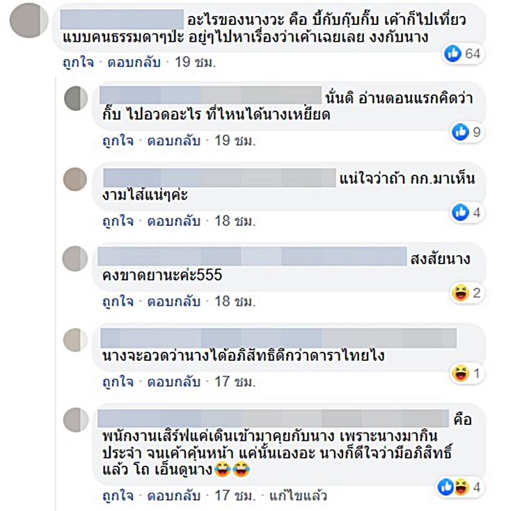 โดยหญิงสาวคนดังกล่าวบอกอีกว่า เธอมากินอาหารที่ร้านนี้เป็นประจำ เพราะร้านอยู่ใกล้มหาวิทยาลัยที่เธอเรียน และมองว่าการเป็นดาราใช่ว่าจะมีอภิสิทธิ์อะไรในต่างประเทศ เพราะต่อให้อยู่ที่เมืองไทยจะดังแค่ไหน มาต่างประเทศคนอื่นก็ไม่รู้จักอยู่ดี