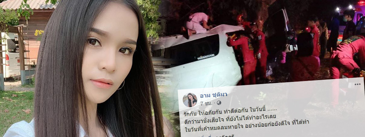 อาม ชุติมา เผยข่าวเศร้า หนึ่ง จุ๊กกรู๊ คนขับรถตู้ เกิดอุบัติเหตุรถชนต้นไม้เสียชีวิต หลังเพิ่งไปส่งนักดนตรีจากสกลนคร-บึงกาฬ แล้วแวะไปหาแฟนสาว