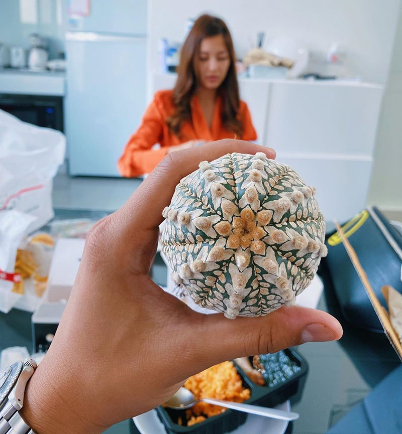 ถามว่าสนใจถึงขั้นทำเป็นธุรกิจเลยไหม หนุ่มกัน ก็เผยว่า คงยังไม่ขนาดนั้น แต่แค่แรก ๆ เราซื้อไว้ดูเล่น เพราะสวยงาม แต่หลัง ๆ เขาบอกว่ามีแต่แม่พันธุ์สวย ๆ น่าจะขยายพันธุ์ได้ ก็คิดว่าน่าจะเป็นไปได้ เลยปรึกษาพี่ ๆ ในวงการ คือมันก็มีลู่ทางของมันอยู่ ตอนนี้ก็มีประมาณ 100 ต้นได้ แล้วก็มีทำเป็นเรือนเพาะปลูกให้ ก็วางแพลนจะขยายเพิ่มด้วย ตอนนี้ไม่ถึงกับเก็บเงินซื้อกระบองเพชร คือเราก็มีเงินเก็บบางส่วนที่เราอยากจะให้รางวัลตัวเองบ้าง เราให้ครอบครัวมาเยอะแล้ว บางอย่างเราก็อยากให้ส่วนนี้เป็นรางวัลตัวเองบ้าง