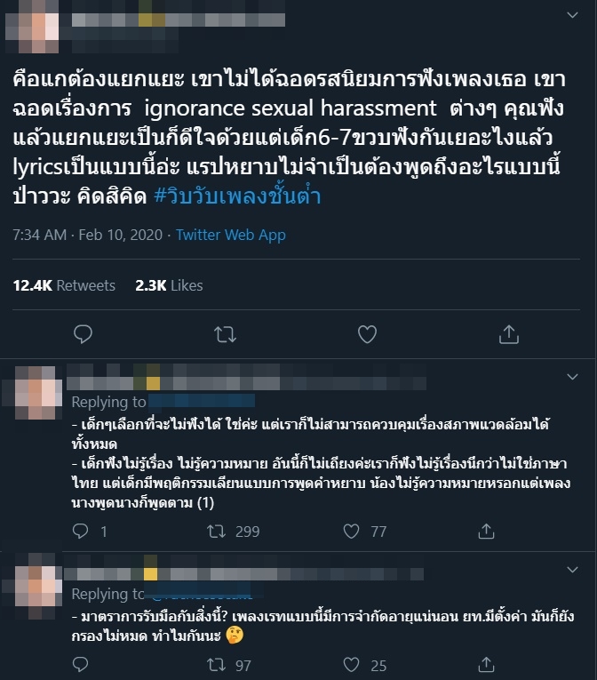 โดยเฉพาะอย่างยิ่งมีเด็กจำนวนไม่น้อยที่ชอบฟังเพลงดังกล่าว และร้องตามได้ทุกท่อน อาจจะรู้ความหมายหรือไม่รู้ความหมายแน่ชัด แต่ก็เหมือนเป็นการปลูกฝังพวกเขา ส่งผลทางความคิด เมื่อเติบโตมาอาจจะมองว่าเรื่องเช่นนี้เป็นเรื่องปกติในสังคม รวมไปถึงภาวะทางด้านอารมณ์ มีความเป็นไปได้ที่เด็กอาจจะก้าวร้าวและรุนแรง จากพฤติกรรมการเลียนแบบเพลงดังกล่าว